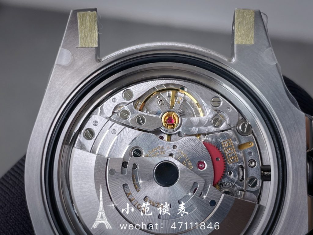第五点:就是机芯区别,真C厂是采用的是丹东3135机芯,3135机芯的特性就是调整时间日历是瞬跳的,把头顺时针旋转,指针也是顺时针旋转的一个效果,逆时针旋转,指针也是逆时针旋转的一个效果 。另外假C的机芯调时间的方向也是与丹东3135机芯方向相反,还有日历不是瞬跳的。