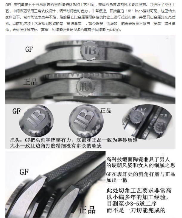 GF厂宝珀黑陶瓷五十噚对比正品评测做工质量如何