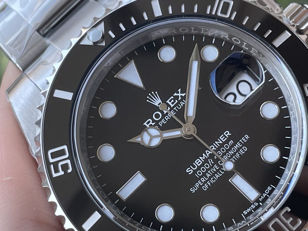 圈口:独家clean v4版本 颜色无限接近原装 clean陶瓷类配件 陶瓷圈夜明珠,是温润如玉夜光珠 不是死白色的, clean陶瓷圈+夜光珠完美复刻原装的 。像C厂的陶瓷圈夜明珠凸起刚刚好、是平整的不会高出来很多,别的厂夜明珠凸起高很多,如果夜明珠凸起来高很多是不对版,所以大家可以通过夜明珠去分辨。单向旋转的陶瓷圈口,声音非常的清脆。转动一圈是120个卡槽点,可以根据声音去判断。还有一个重要的细节点,夜明珠对准12点位置,向左旋转10下(根据声音来判断),夜明珠的位置一定是停在十一点刻度位置。
