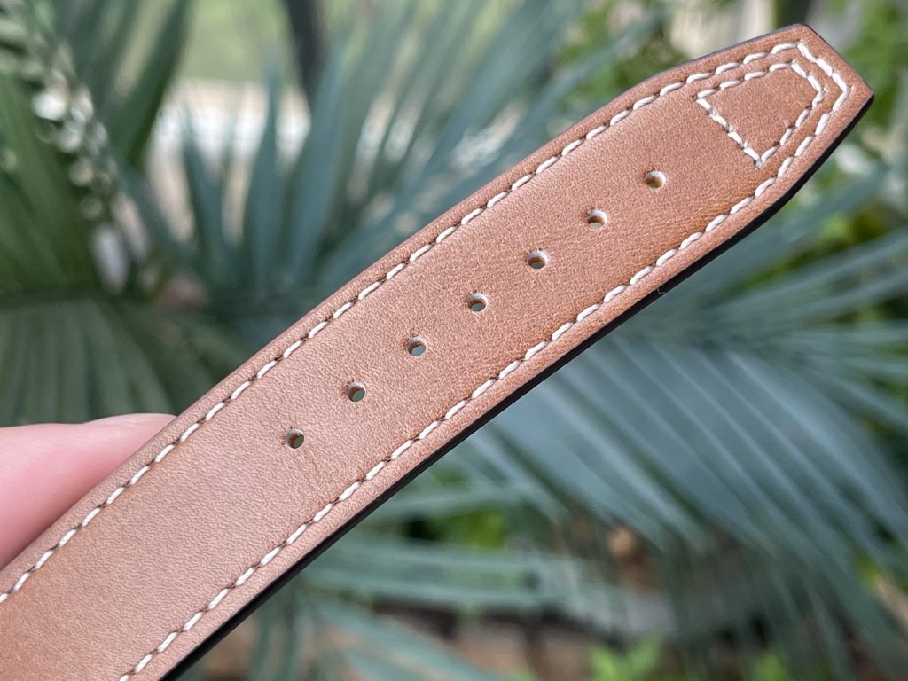 皮带:ZF厂万国飞行员搭配为黑色的头层小牛皮表带,和黑色的表盘搭配相得益彰,表带背面黄色搭配,非常鲜艳,手感还算比较融软,舒适性很不错。精钢打磨的针形表扣,经过拉丝处理,上面镌刻IWC标志,整体腕表做工方面则是很为到位!