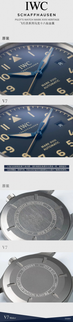 V7厂七星推荐之万国马克18系列旗舰版超级钛马克十八IW327006复刻手表,循例透明化真假对比!不惜成本单独再购一只原装开模,耗时两年,终可修正市面现有版本的所有不足,独家防指纹技术同步原装,细节上惟妙惟肖,极致完美。